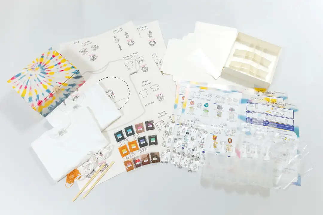 ・「タイダイホームキット」の染料の色数や同梱の道具類、説明書の内容を厳選したライト版商品