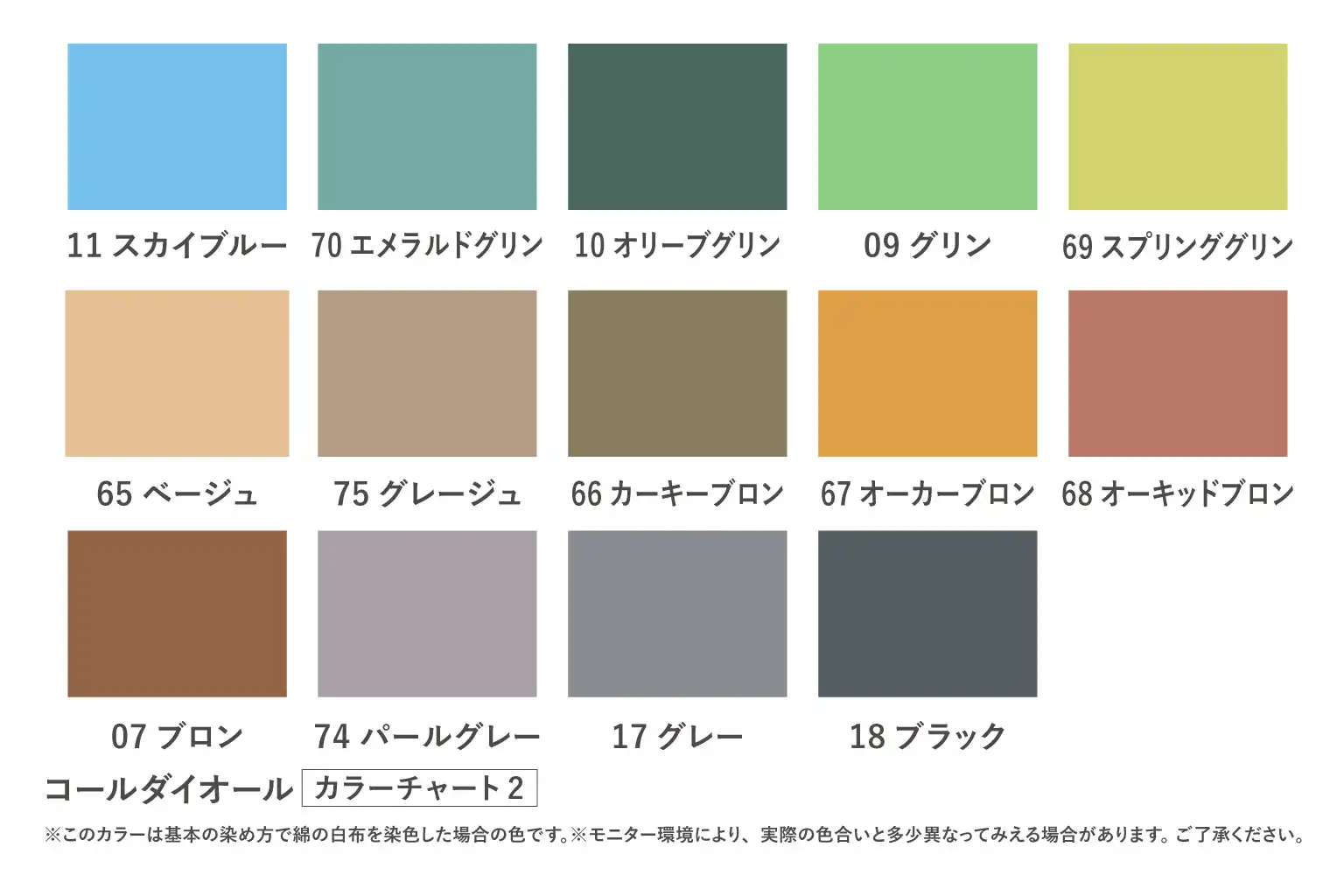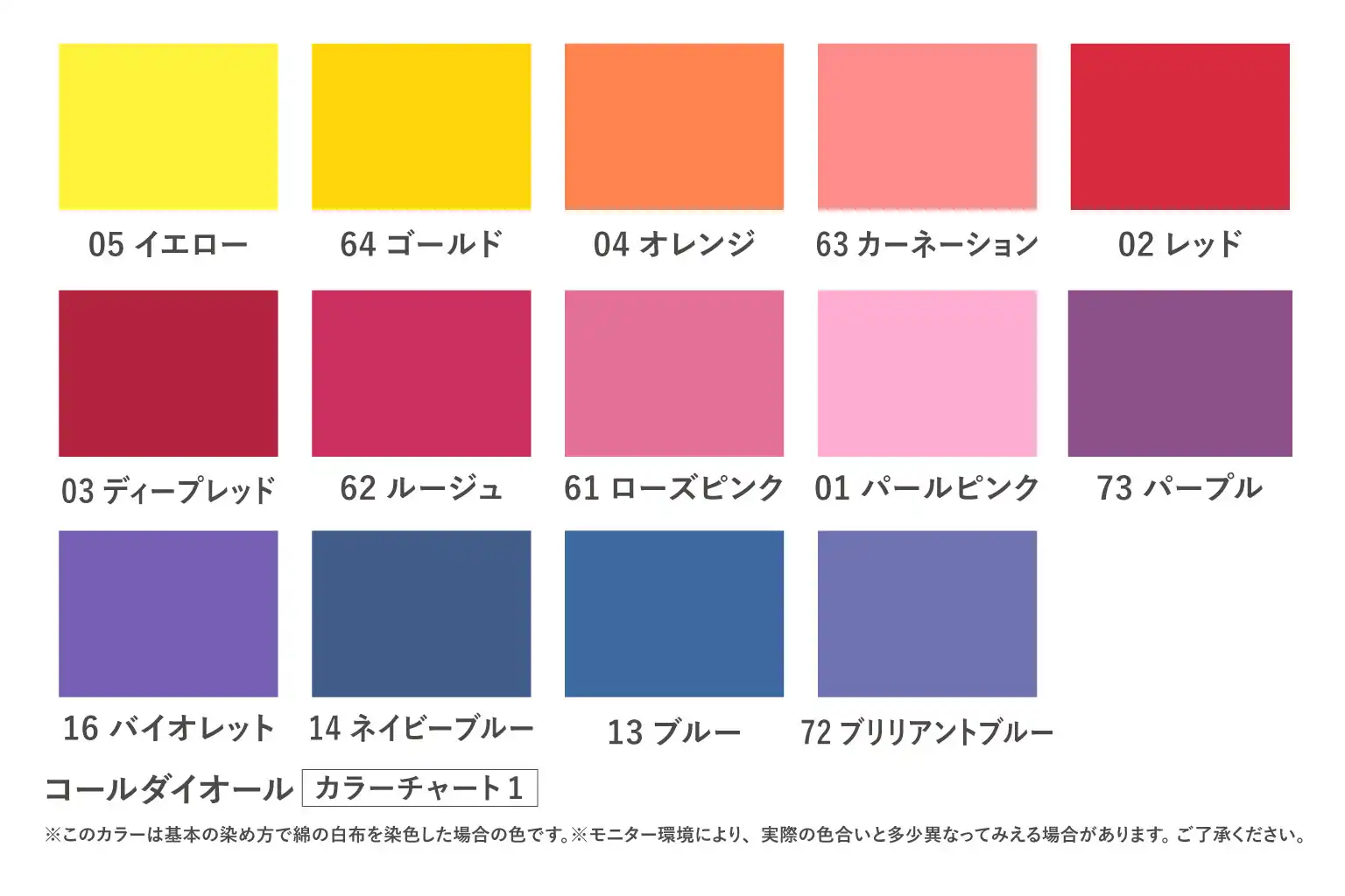 植物繊維(綿/麻/レーヨン等)の染色後には別売の色止剤ミカノールで色止めをお薦めします。