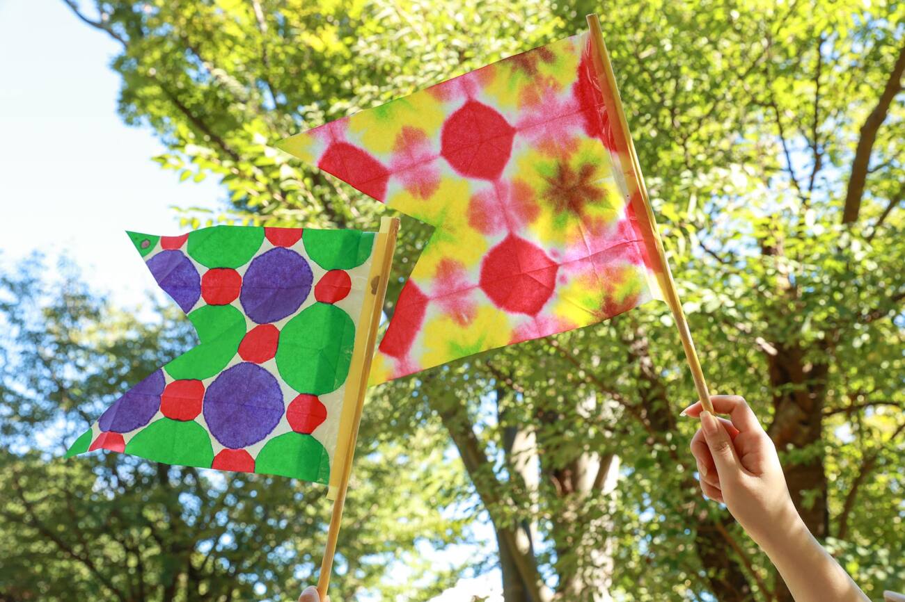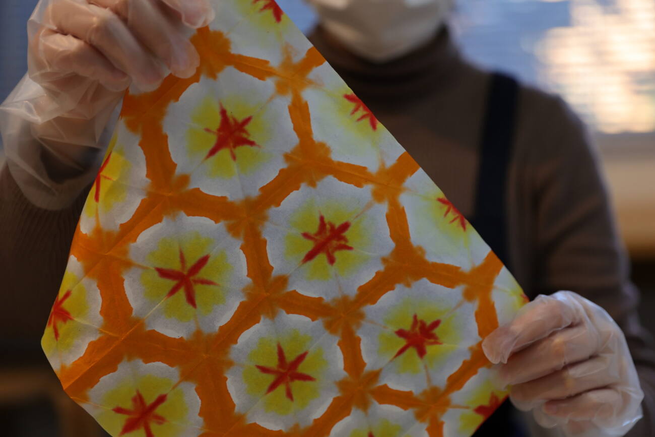 ・折り紙のように和紙を折って染める「折り染め」をはじめ、お子様から大人まで、不思議と懐かしい、染色を楽しめる