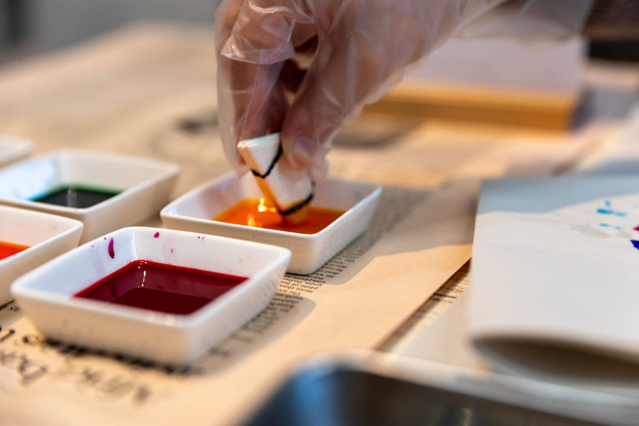 ・液体なのでそのまま和紙を浸せば、すぐにオリジナル作品を作ることができる