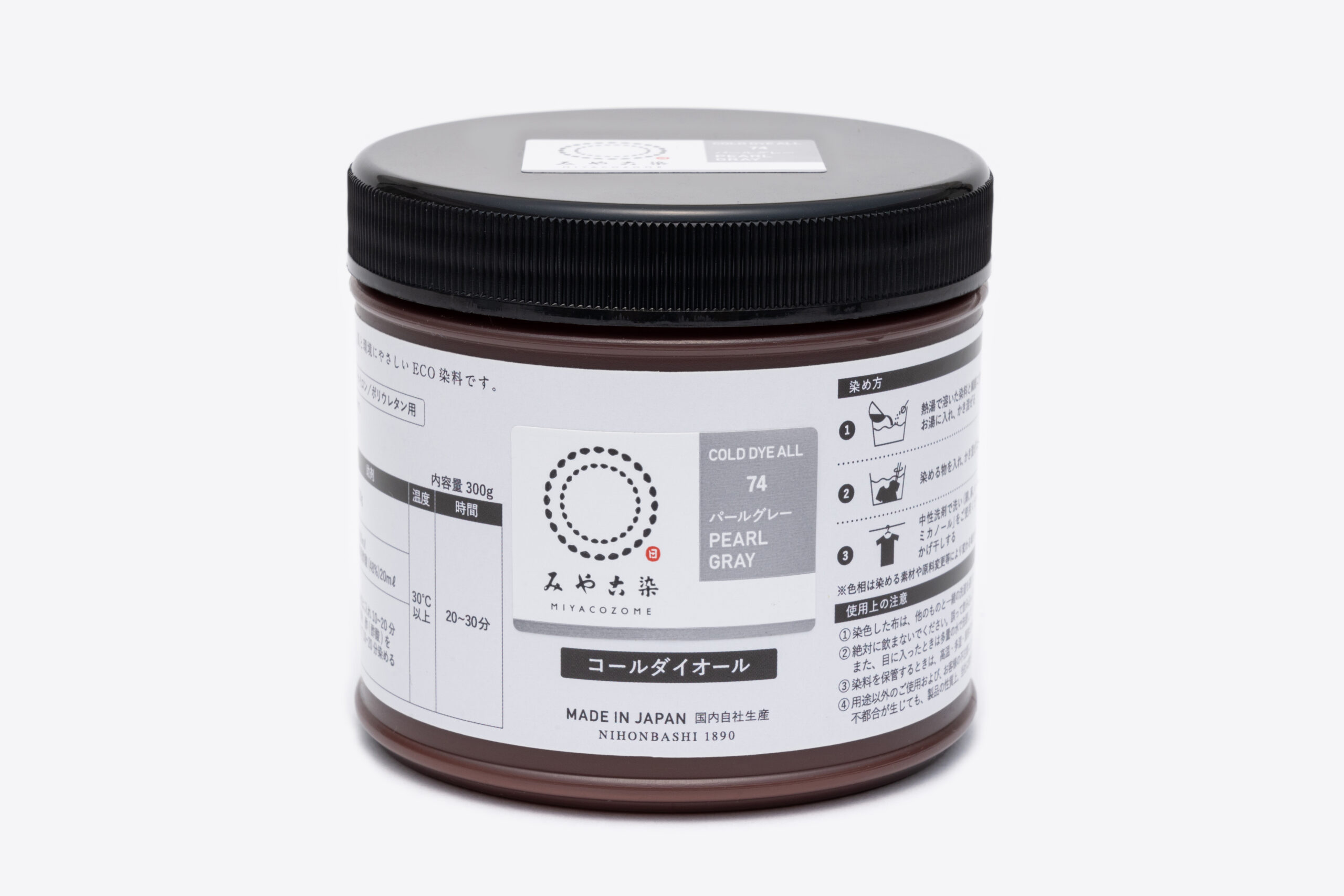 低温(30℃ 以上)で綿・ウール・それらの混紡品など各種繊維が手軽に染まります(⚠ポリエステル(縫い糸)は染まりません)。高温を避けたいウールなどの染色やお子様との染色に安心してお使い頂けます。