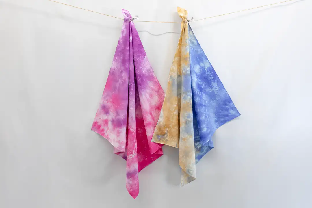 ・「夢しぼりシート」を使い、タイダイ染め(ムラ染め)の大風呂敷を作るキット。
