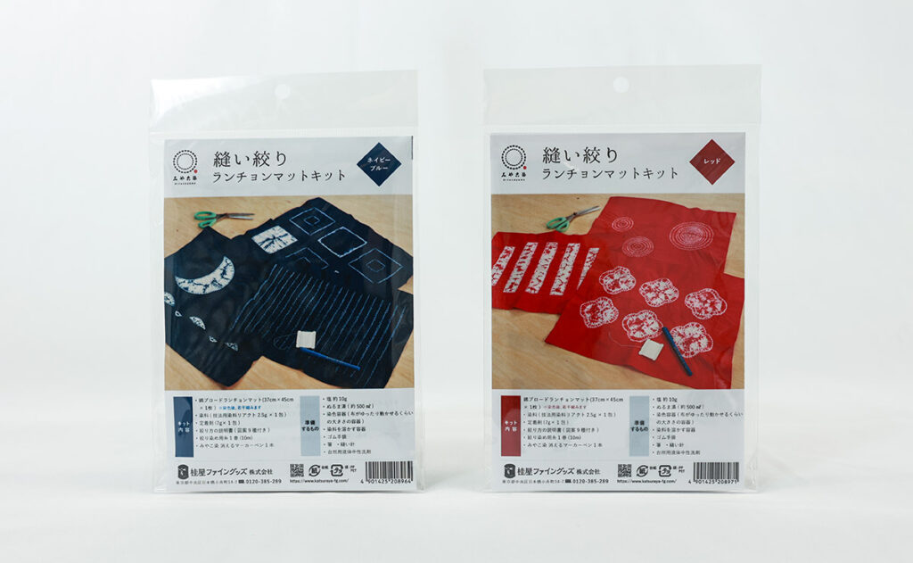 桂屋ファイングッズ株式会社(以下当社)は、日本の伝統的な染色技法である”縫い絞り”を身近に楽しんで頂けるユニークなキット商品「縫い絞り ランチョンマットキット」を4月より新たに発売します。