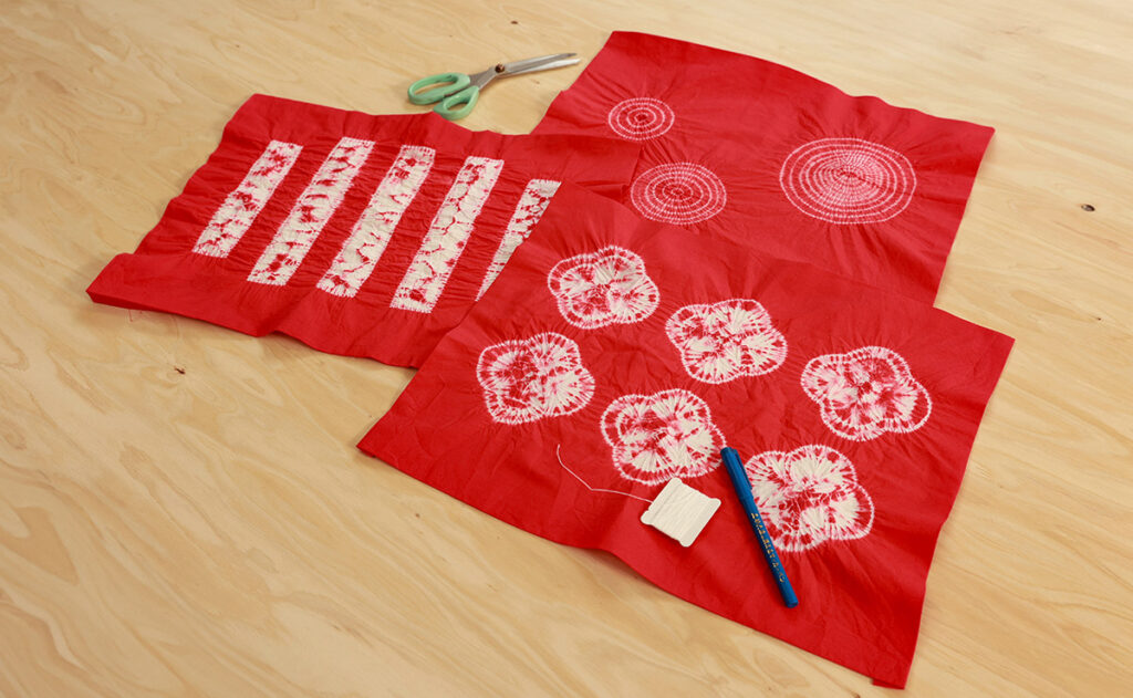 日本の絞り染めは奈良時代まで遡る歴史のあるもので、各種技法の中でも“縫い絞り”は代表的なものの一つ。文様に沿って細かく平縫いをして引き締めて絞ることで、染料が入らないように模様を染め出す技法ですが、こうした精緻な技法はハンドメイド愛好家を含め一般の方が、ご家庭で手軽に体験するには、ややハードルが高いものでした。