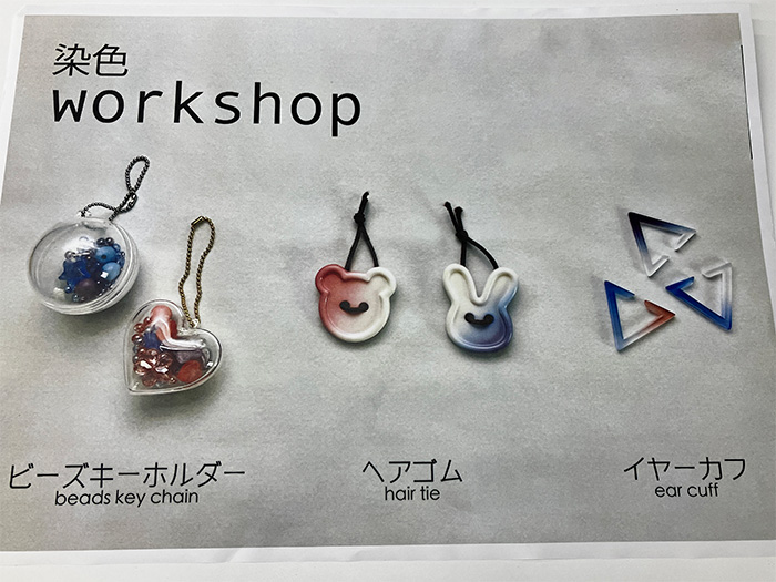 今回の出展では、アクセサリー・ビーズ染めのワークショップとキット商品などを販売。