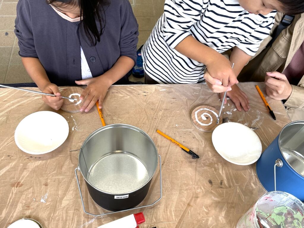 ペンキ塗りと染色でオリジナルのコースターを作れて大満足してくれました!