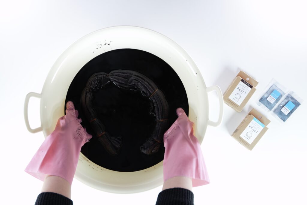 18, 染め上がったら染め液から取り出し、水で軽くすすいだ後、