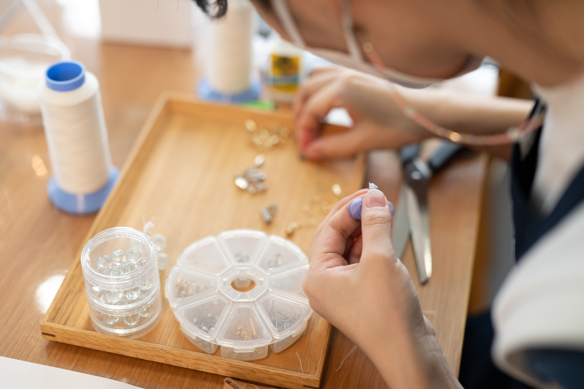 他に類を見ない絞り染め。空気を纏(まと)うアクセサリー絞り染め体験。大人気のうちに終了しました! 少人数での募集のため、ご参加できなかった方には申し訳ありません。