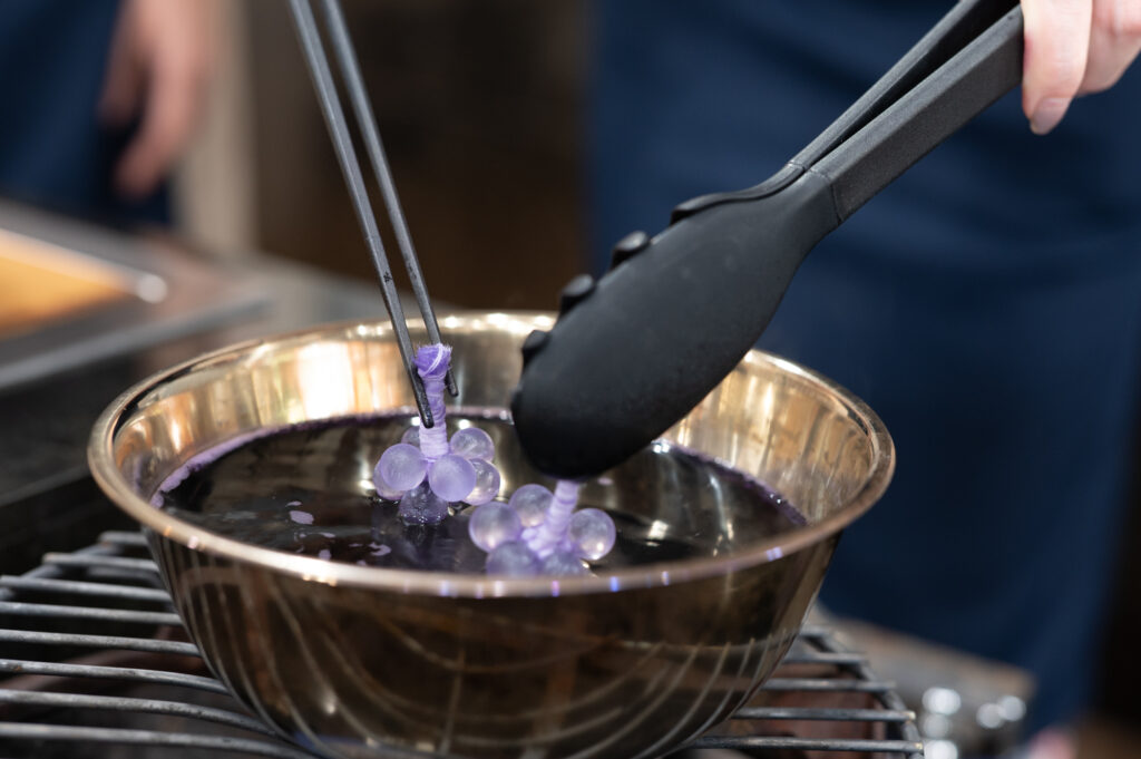 染色はコールダイホットを使って、加熱染色です。沸騰させた染め液の中に、15秒、1分、3分,8分と綿密に計算され