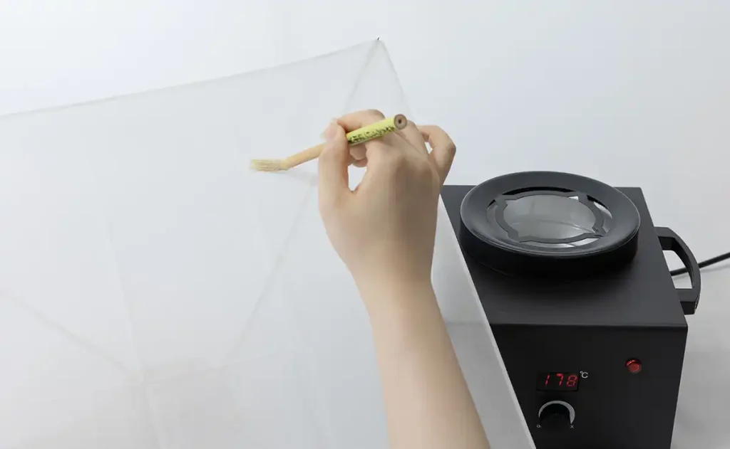 ・ろうの容量が増えたことで、刷毛などの大きな幅の筆類も使用することができます。