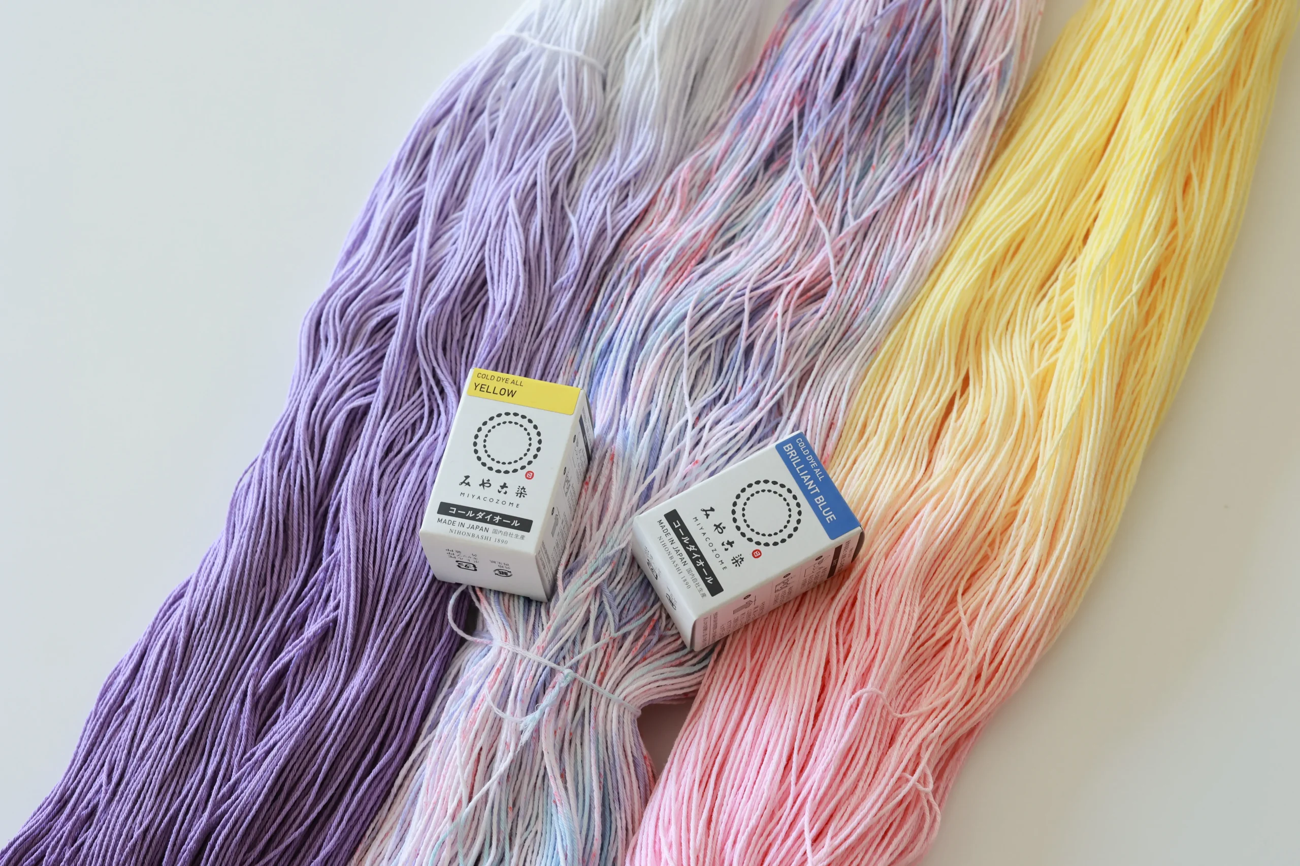 ・コールダイオールは綿•麻•レーヨンなど植物繊維の糸•紐にも使用できます。