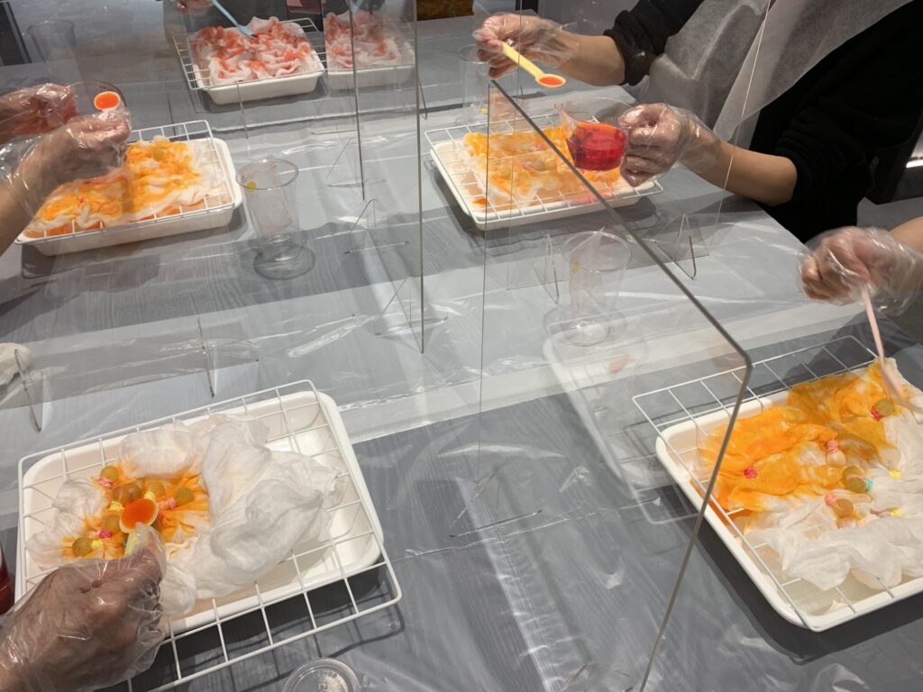 中川政七商店さんの「花ふきん」をビー玉絞りで染めるワークショップ。