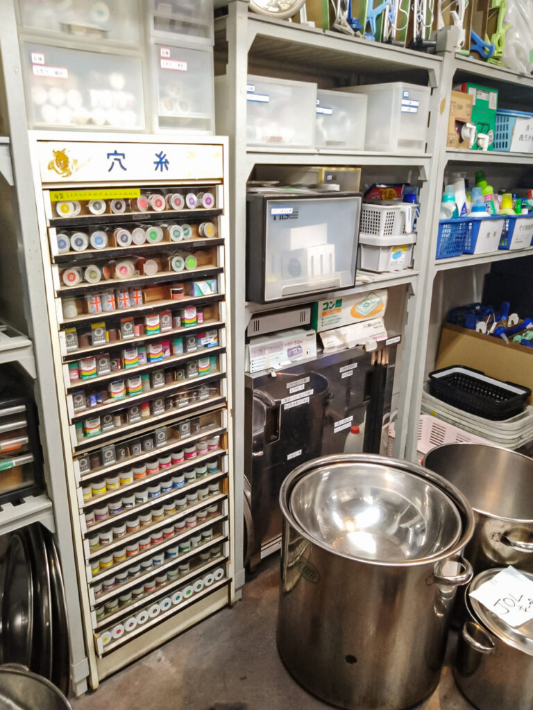 センター内には染色専門の染色室があり、そこでは日々、様々な衣裳をイメージ通りに仕上げるため試行錯誤しながら染めているのだそうです。時に、何の素材かわからないものを染める場合は、まず、みやこ染で試している、とお話いただき、様々な素材に対応できる染料として重宝していただいているのだと、改めて実感することができました。