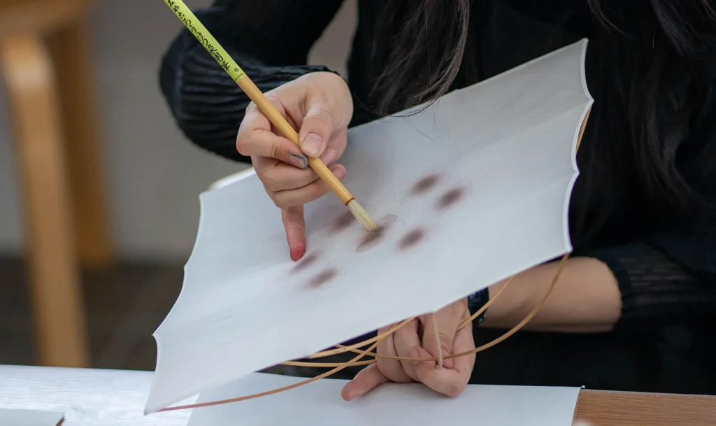 最後に花びらの箇所に全てろうを置けましたら背景を刷毛で染め、今回のワークショップは終了です。