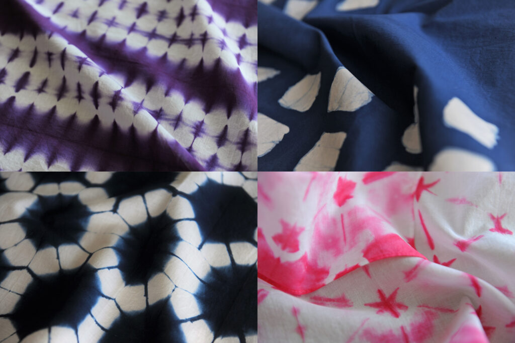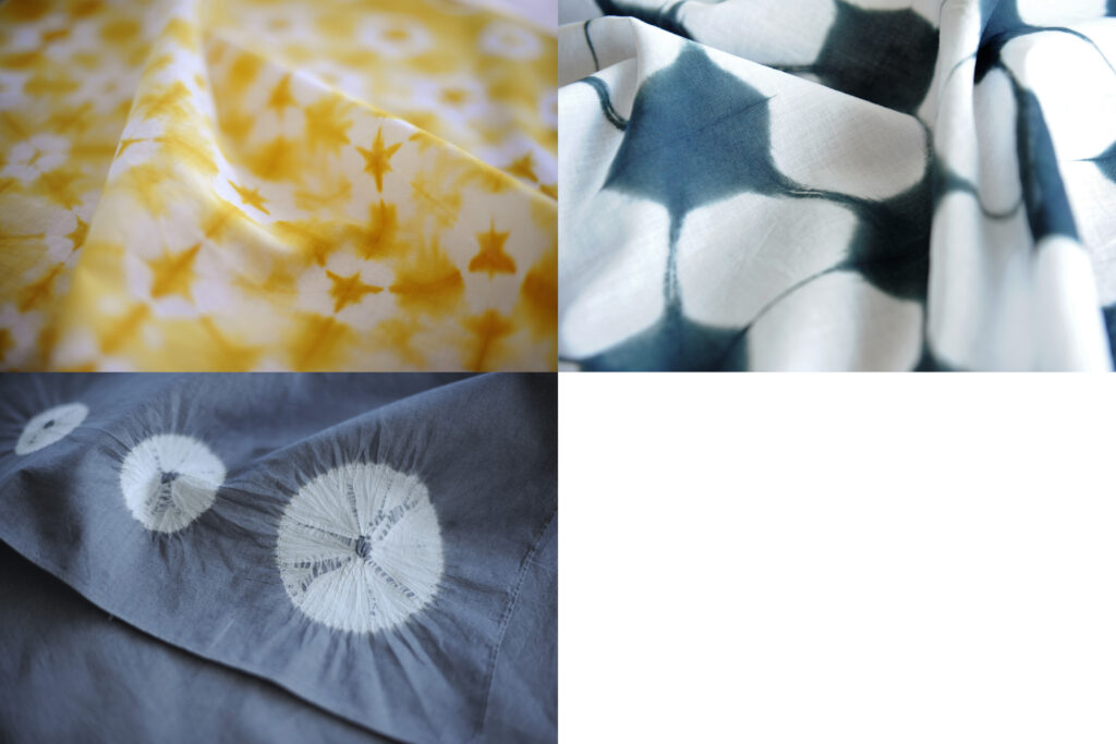 染める工程でムラになりやすく、染色が初めての方には難しい染料ですが、スレン特有の落ち着いた発色や、絞り染めなどの染色技法での染め上がりの美しさは他の染料にはない魅力です。