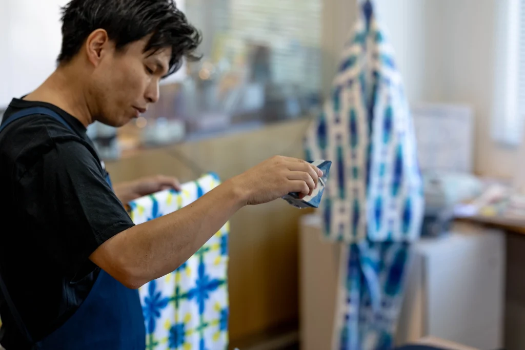 自然の流れや細胞など「テキスタイルならではの模様」をコンセプトに、主に板締め絞りによるにじみを活かした制作により受賞歴多数。