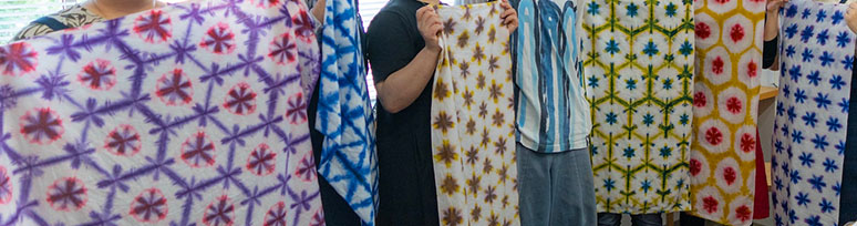 8月11日(日)、12日(月・祝)2日間にわたり、東北芸術工科大学 准教授でありながら、現役のテキスタイルアーティストとして最前線で活躍をされている安達大悟先生をお呼びし、例年好評の板締め絞りワークショップを行いました。