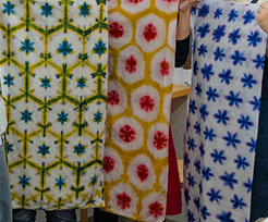 板締め絞りとは、折りたたんだ布を板で挟み、染める技法で規則的な模様ができるのが特徴です。