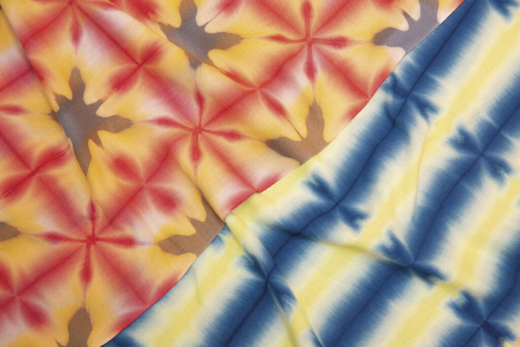 自然の流れや細胞など「テキスタイルならではの模様」をコンセプトに、主に板締め絞りによるにじみを活かした制作により受賞歴多数。