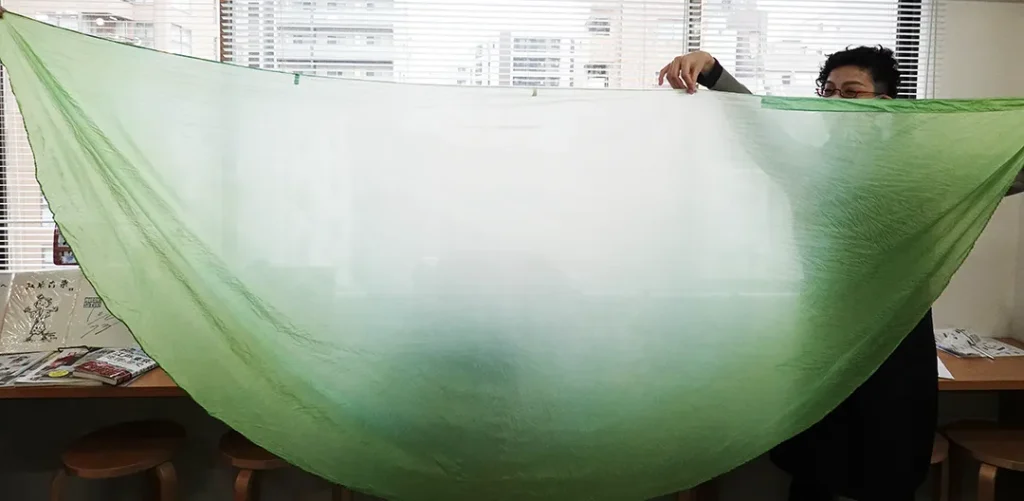 見た目以上にシルクは軽いので、少量の染料で簡単に染められるのが特徴です。