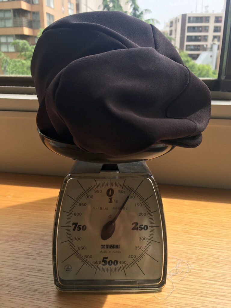 この帽子に必要な染料は 90g × 0.08 = 7.2 g(小さじ5gなので1杯半弱)