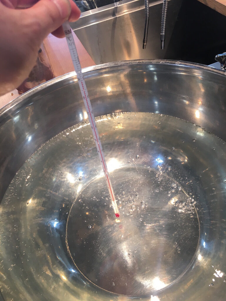 90程度の温度は 中央底にブクブク水泡が上がるだけでなく、