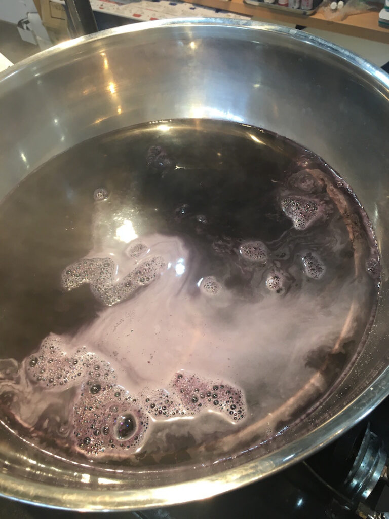 ③染料を溶かし、その後、濃色促進剤も溶かします。