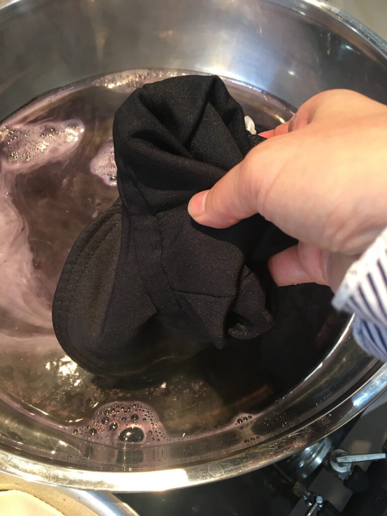 ポリエステル100%繊維専用「ポリエステルダイ」で染めます。