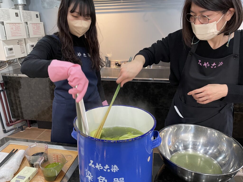 お客様の染めたいものに合わせて、染料をご相談させていただき、染め方をマンツーマンで教えるサービスです。