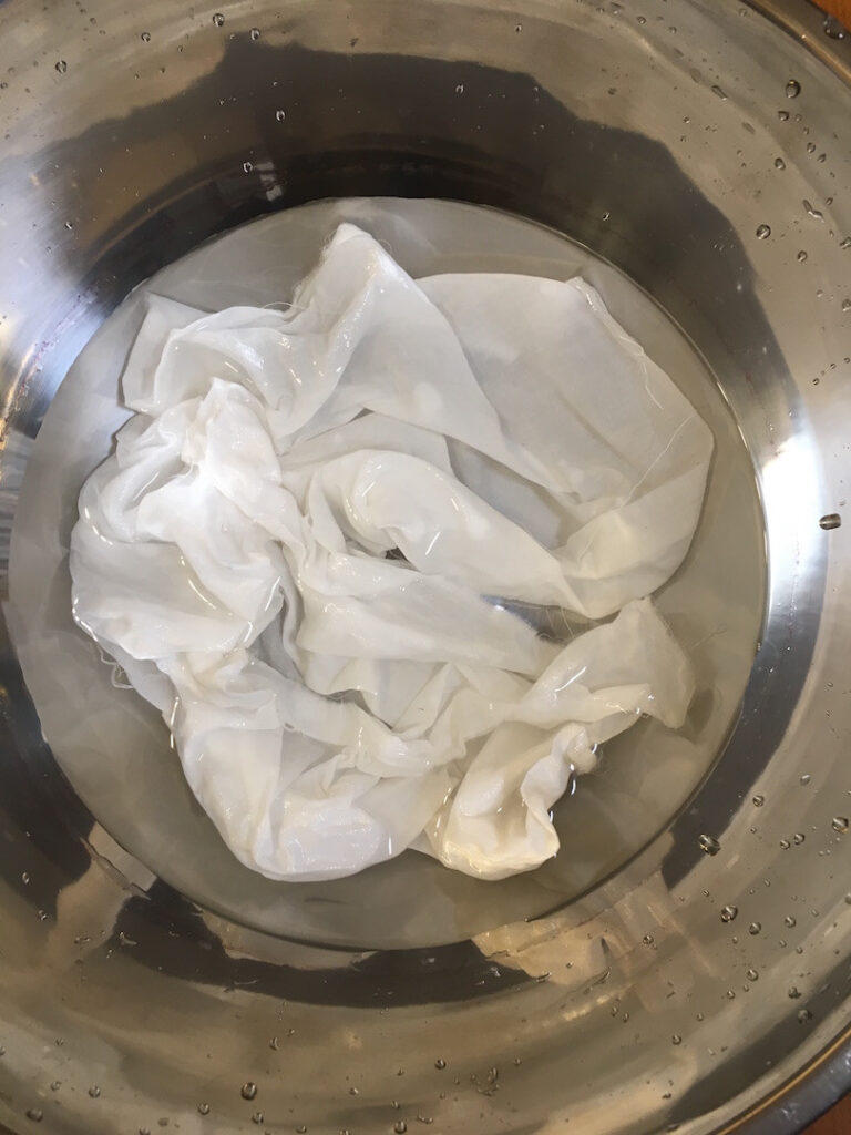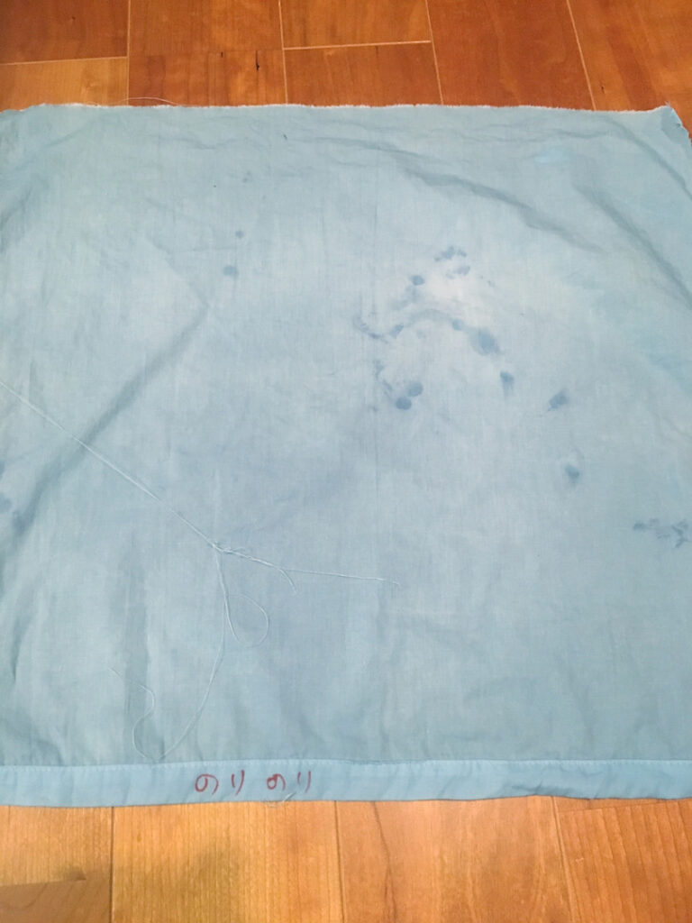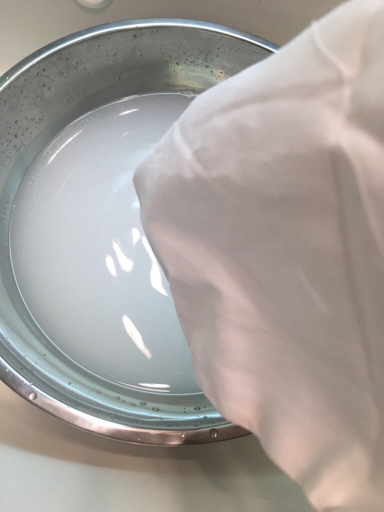 ということで、染める前に染めたい布の汚れや・シミ・のり気を洗い落として軽く絞っておきましょう。