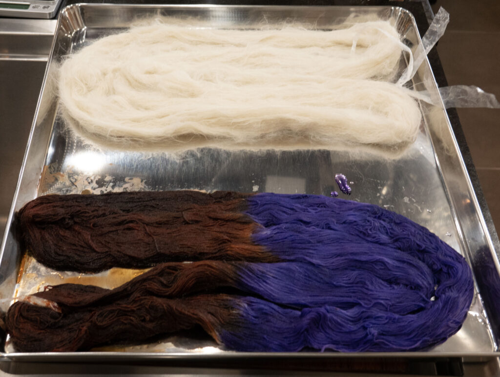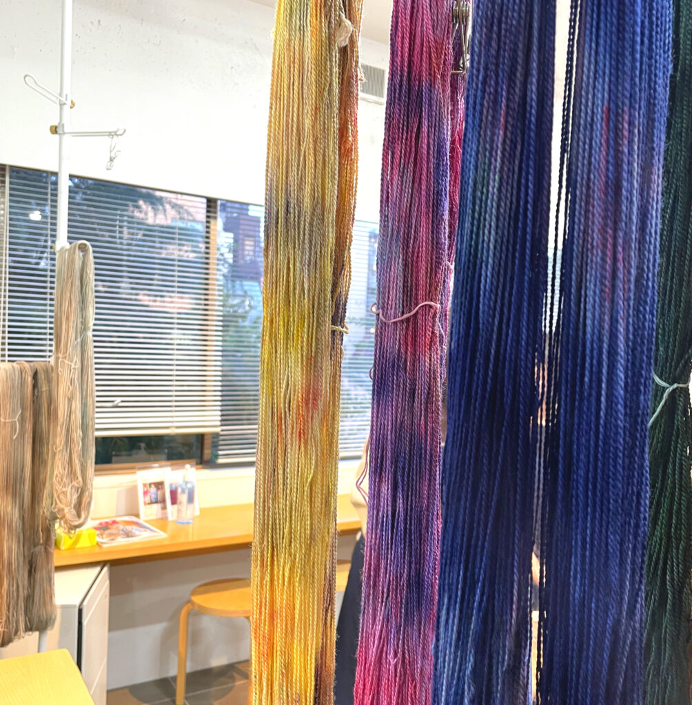 かせにすることで染色中、糸が絡まるのを防いで、束の中まで確認しながら染めることが出来ます。