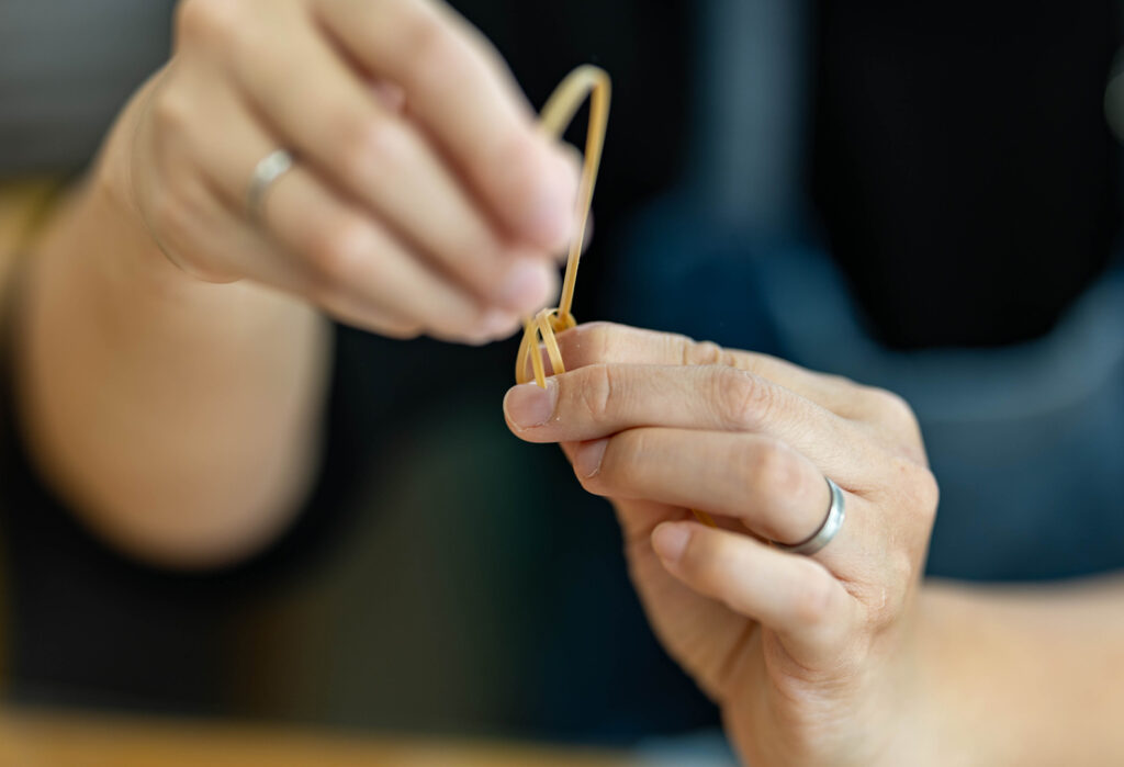 今回使用した竹ひごは厚さが0.2mm程度と、とても薄いので割れないように丁寧に編んでいきます。