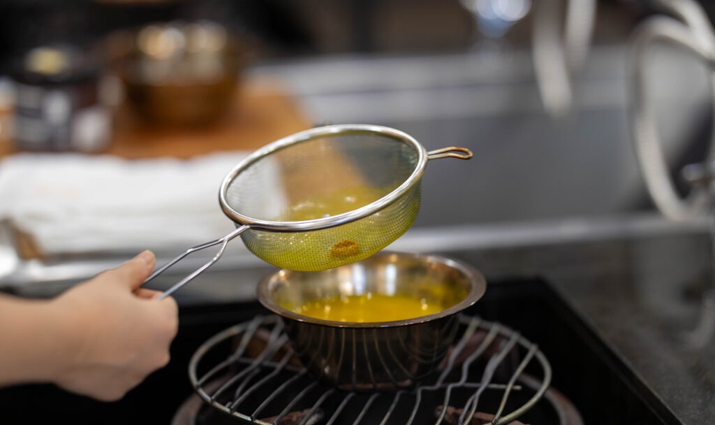 お湯に染料と塩をそれぞれ耳かき2杯ほど入れ、よく溶かしたら加熱をしながら5~10分染めます。