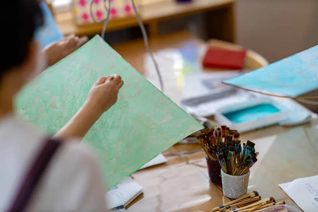 先生からのアドバイスでグラデーションをされる方や紅型染めの特徴の1つの『隈取り』をされる方もいらっしゃいました。