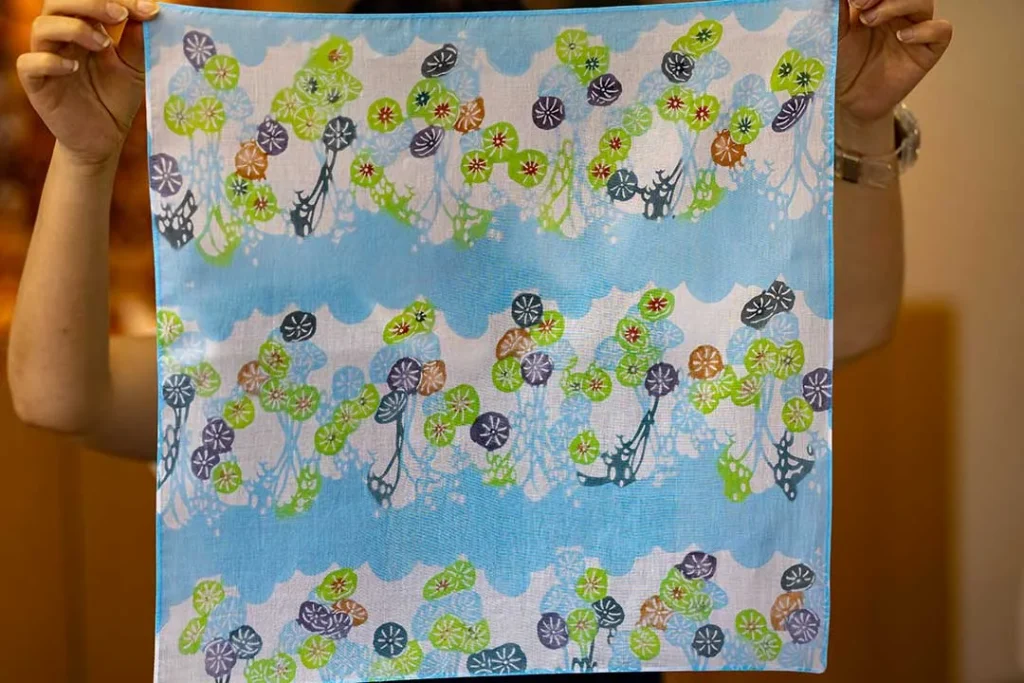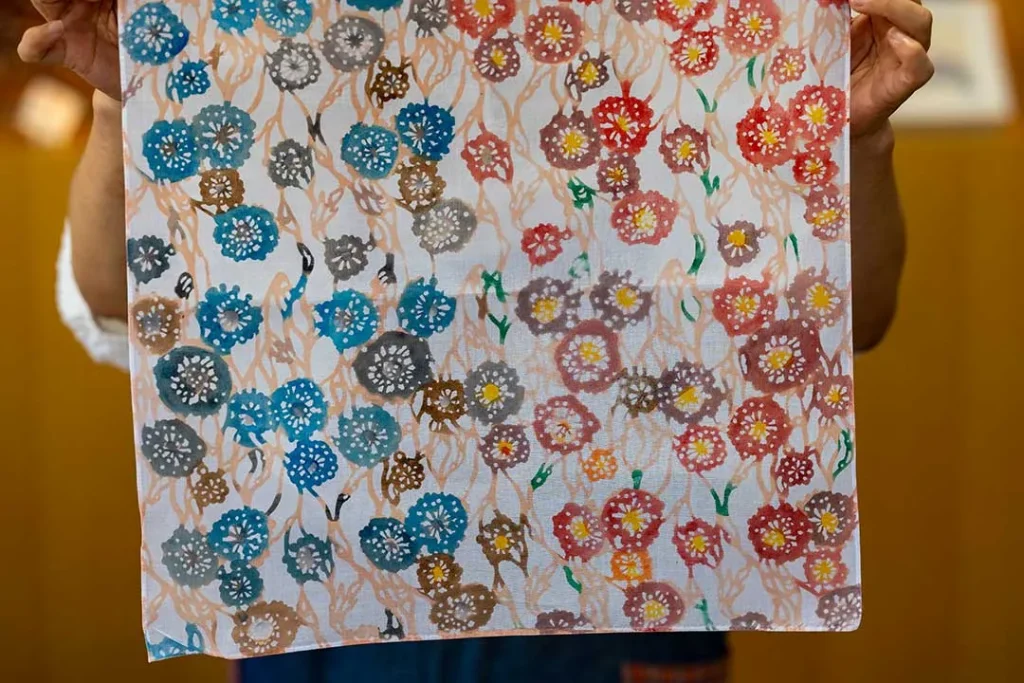 紅型染めは沖縄県を伝統的な染色技法の1つで、糊で防染した生地の上から顔料や植物染料で模様を染めていきます。