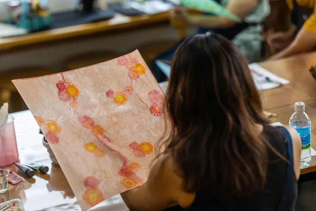 講師は紅型染めの本場である沖縄で学び、今は作家として活動されている竹内まみ先生をお呼びしました。