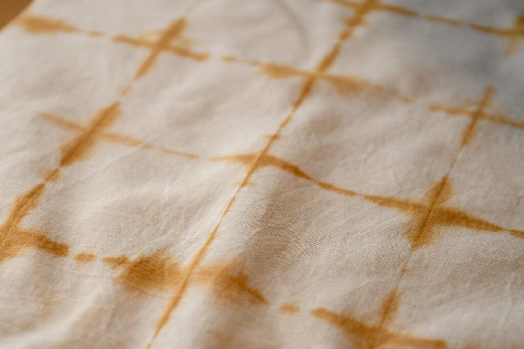 手ぬぐいを畳んで輪ゴムで縛った後は説明書通りに染色してください🌟