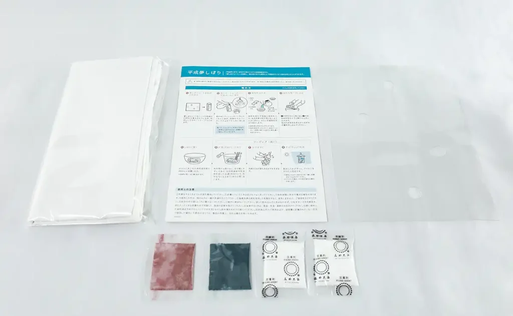 定着剤×2包、夢しぼりシート×1枚、染め方説明書