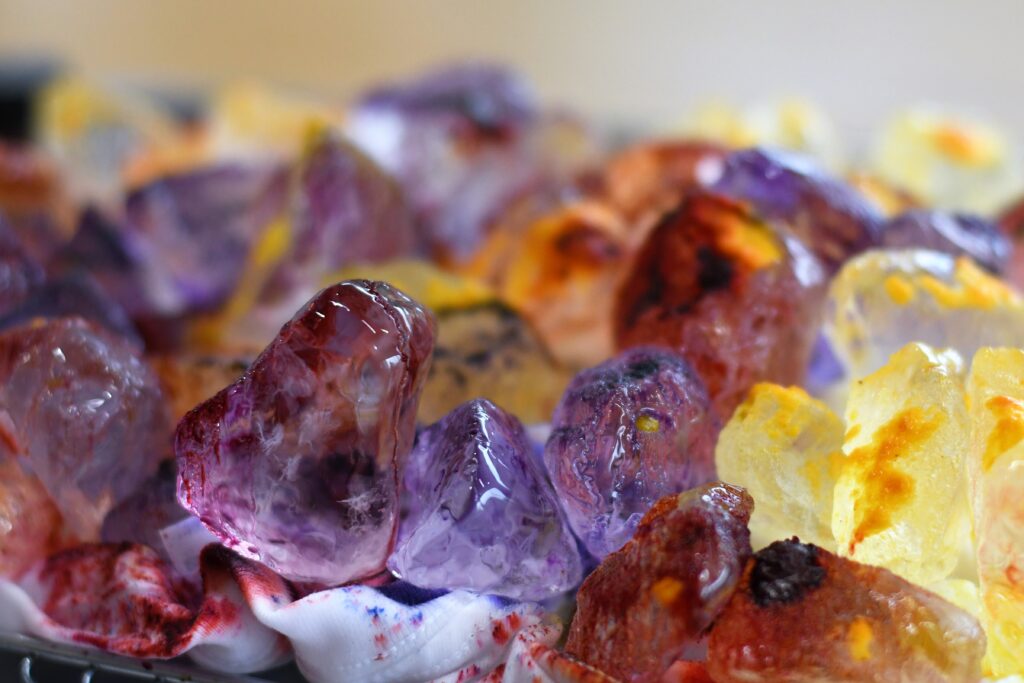 氷が溶けるとシャツに自然に染料も落ち染まります。