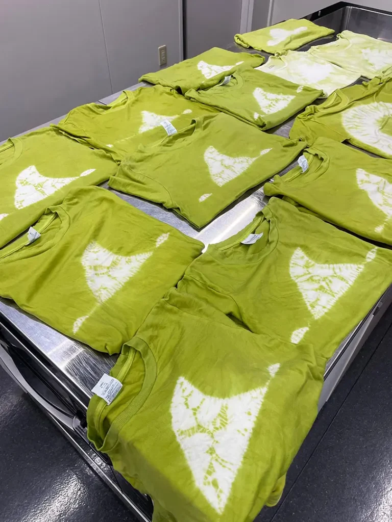 我々、みやこ染は茅ヶ崎に染料を生産する自社工場がある地元企業として、染料の色や染め方のアドバイスをさせて頂きました。