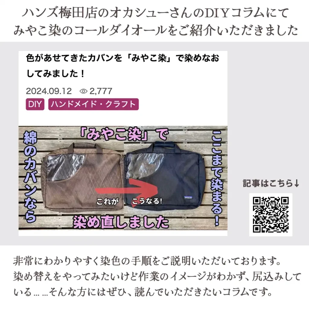 ハンズ梅田店のオカシューさんのDIYコラムにて、みやこ染のコールダイオールをご紹介いただきました。