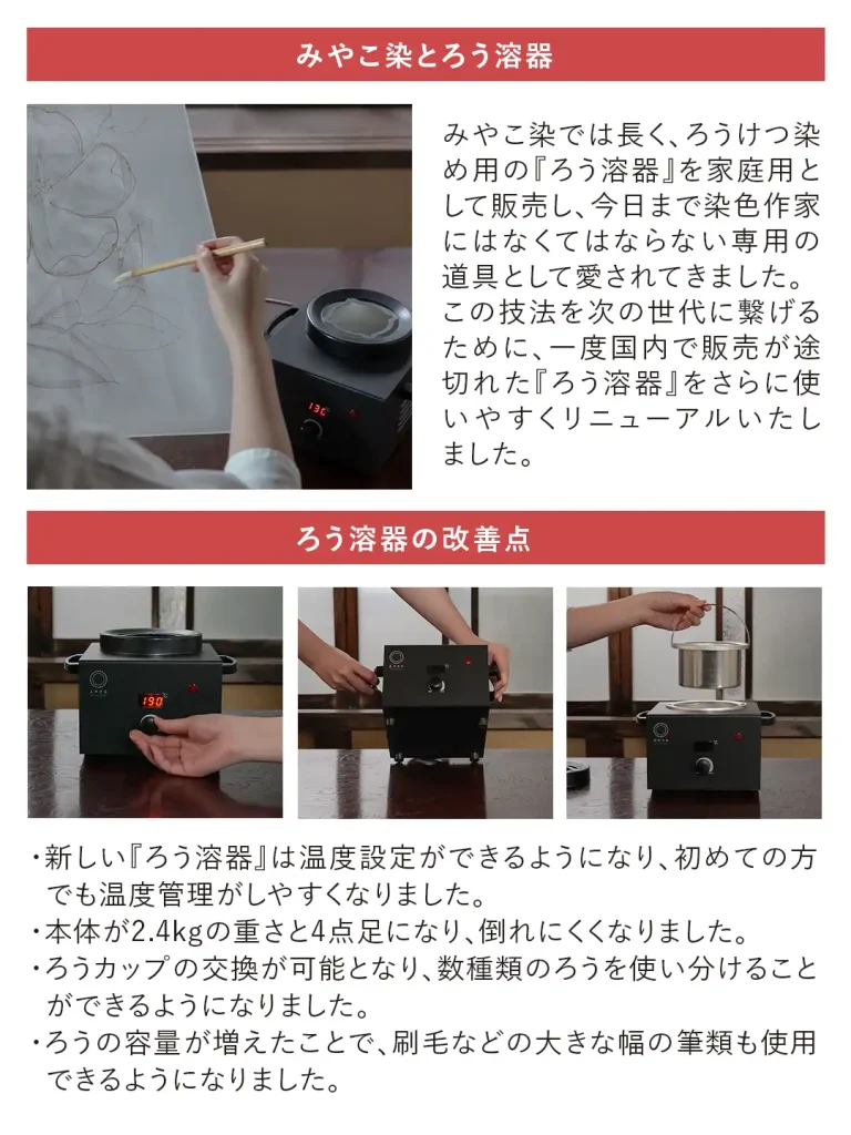 『みやこ染 ろう溶器』は4月1日(火)から販売を開始!みやこ染公式オンラインショップにてご購入いただけます。
