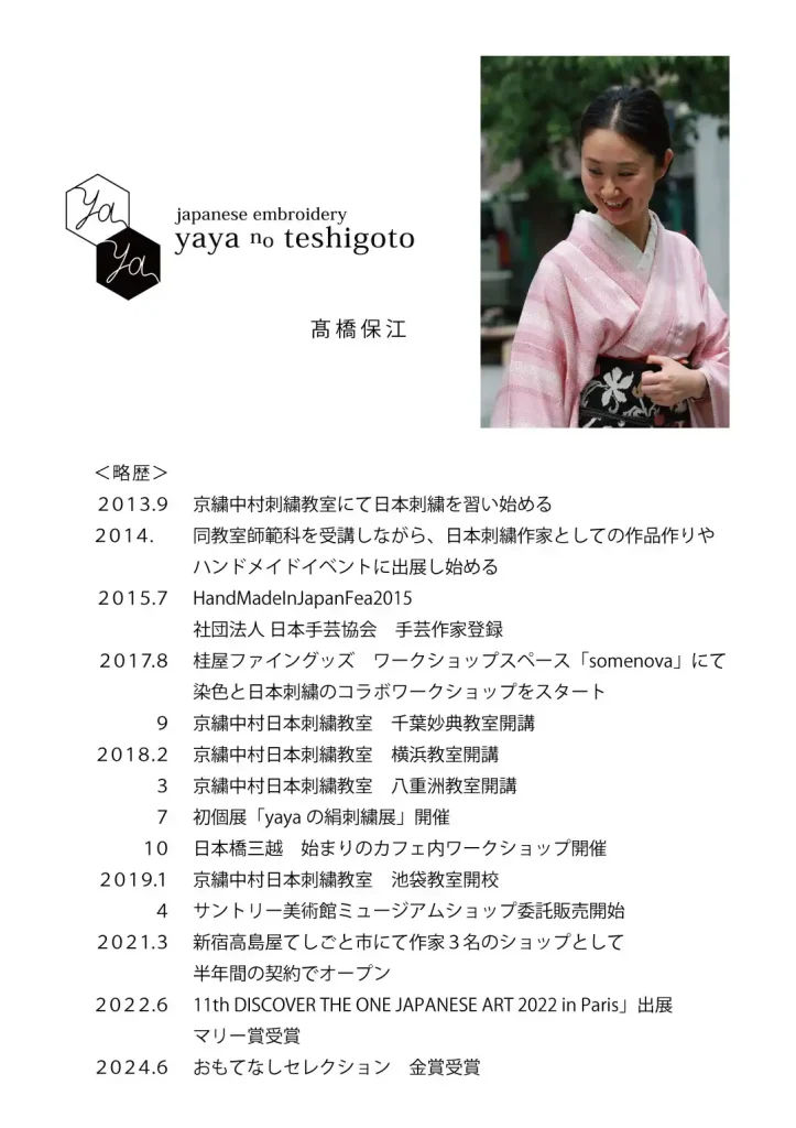 somenovaでは日本刺繍作家 髙橋保江先生による