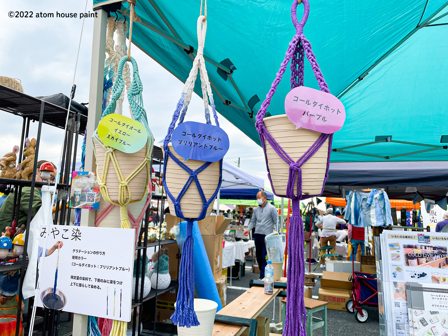 2022年10月22日(土)、23日(日)、三重県桑名市のなばなの里のイベントにて、 みやこ染の染料で染めたマクラメを紹介していただきました。 染め液にマクラメを浸して簡単にオリジナルのプラントハンガーを作ることができま […]
