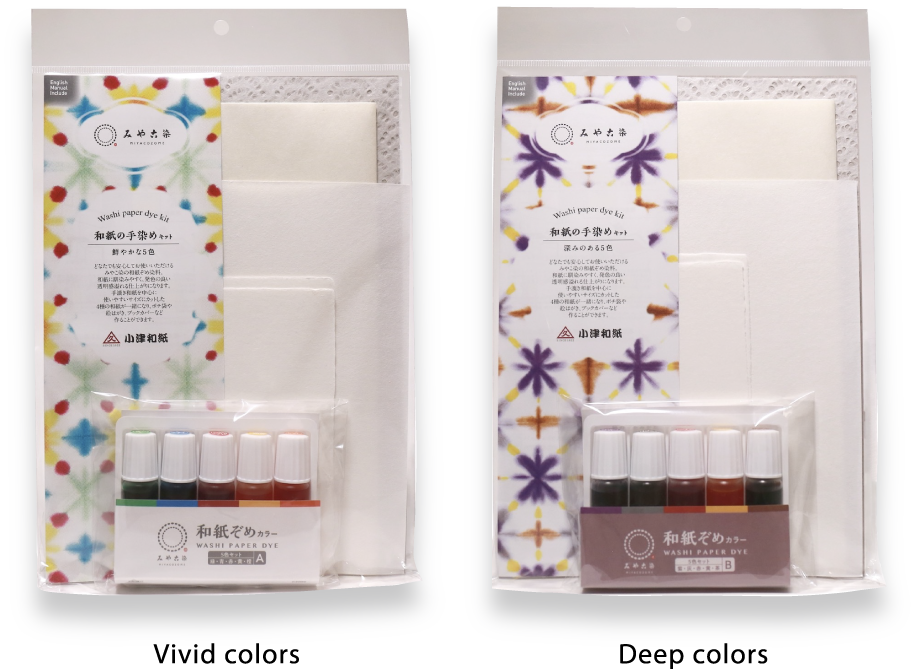 - 7 hand made traditional washi papers, 5 colors of wash paper dye (45ml), English instructions,