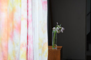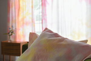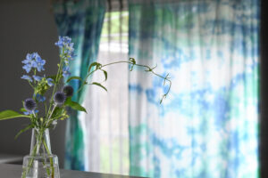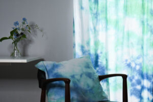 今回は白地のカーテンとクッションカバーも手染めすると、