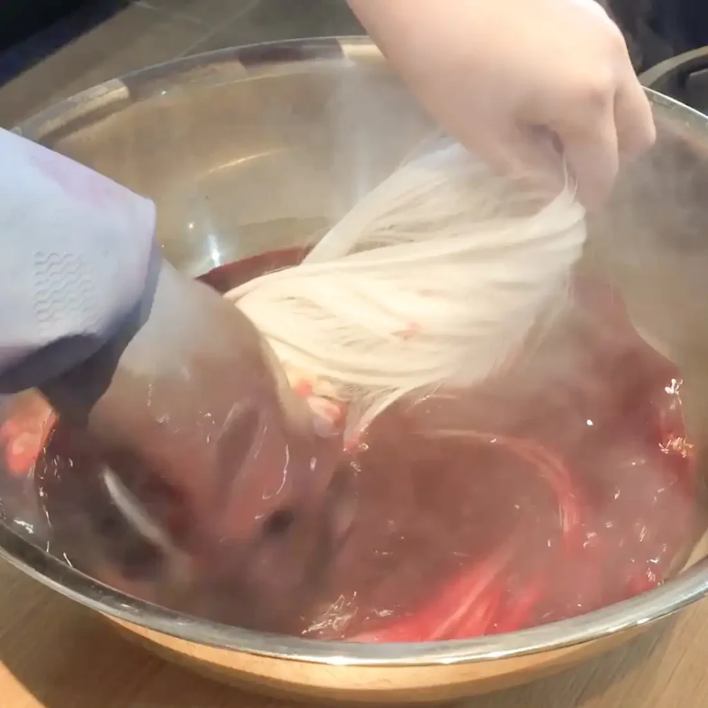 ③染料を1/2②の熱湯に加えてウィッグを染める