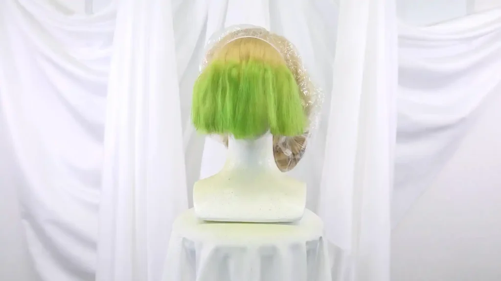 ヘアアイロンの熱で染料が発色して鮮やかなネオングリーンになります。