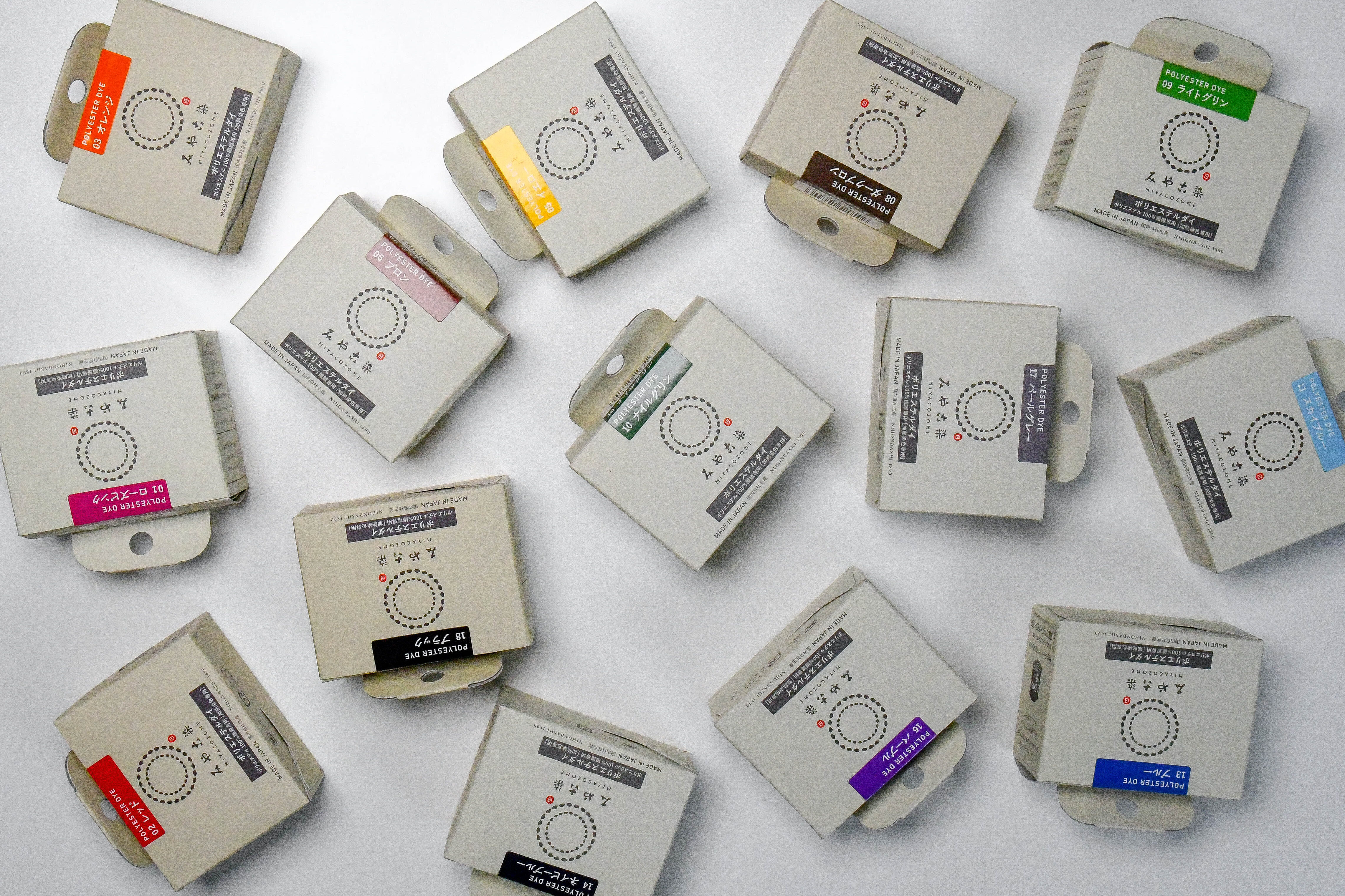 みやこ染の定番商品。植物繊維も動物繊維もポリエステルも染まる染料です。