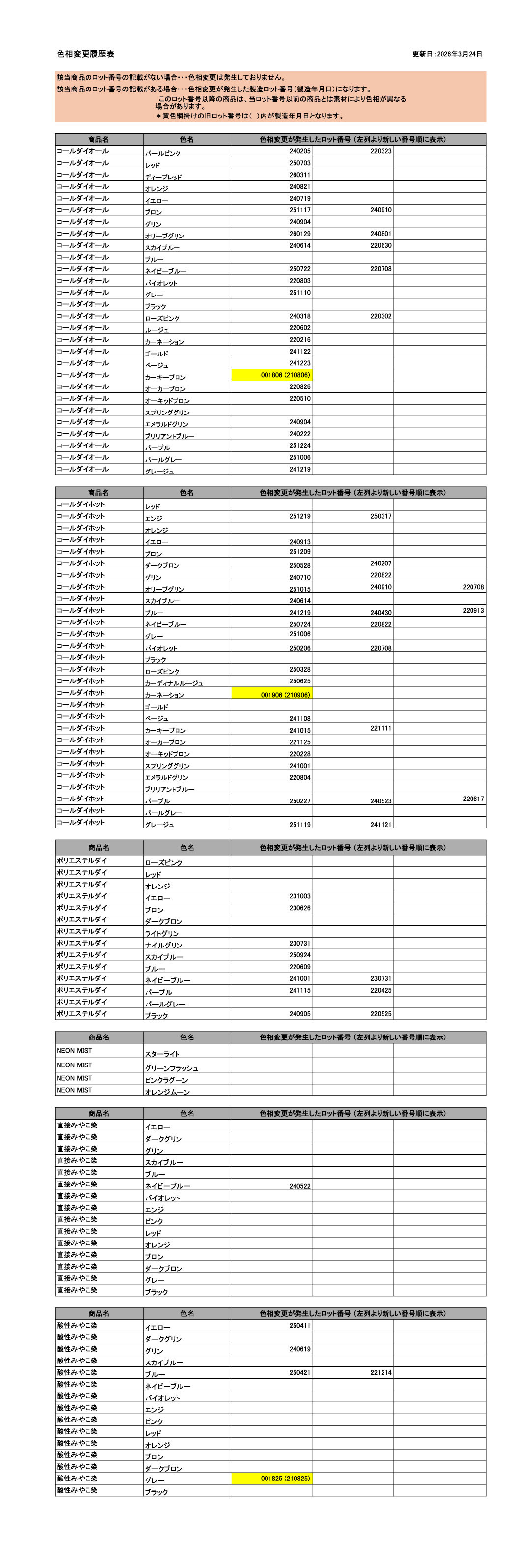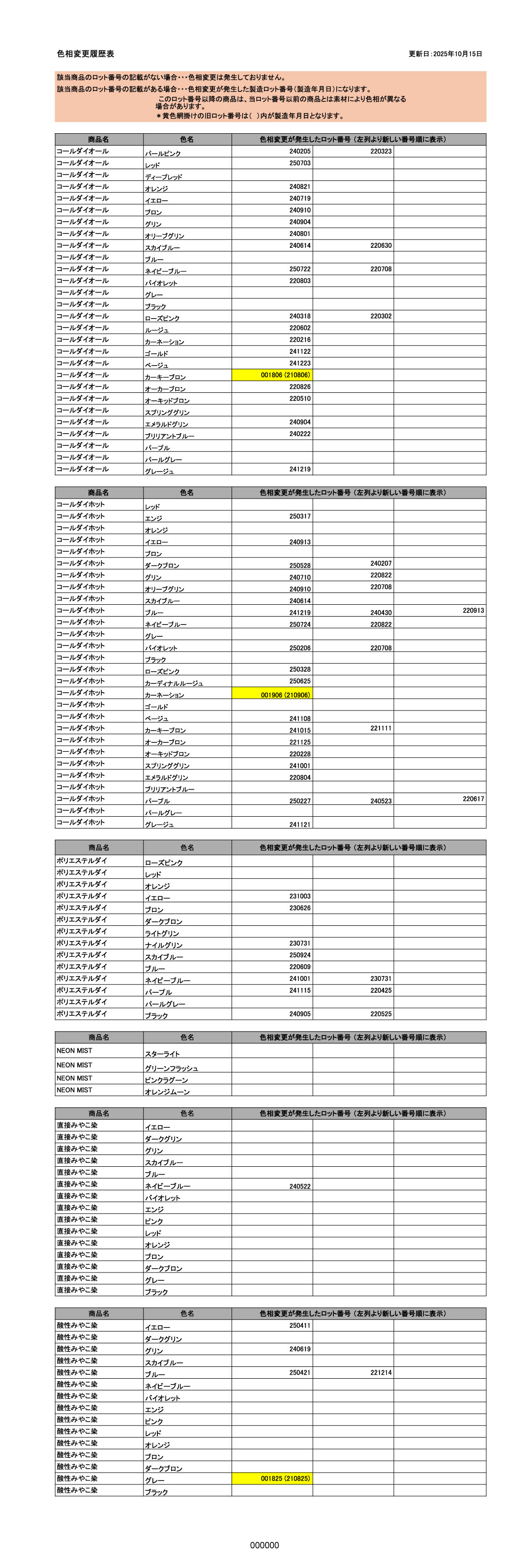 色相変更が発生した製造ロット番号(製造年月日)になります。